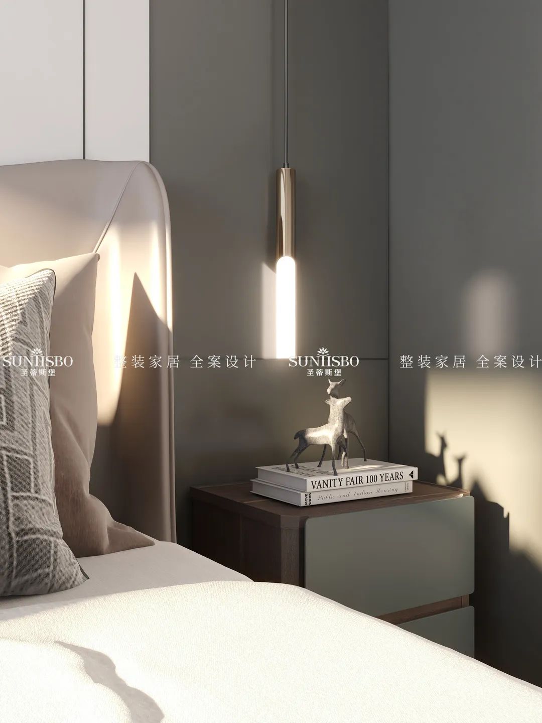 本案业主本人是一对年轻的90后小夫妻,他们对设计要求较高,崇尚极简主义生活,也具有一定的艺术审美标准。本案设计师与业主沟通后,设计初稿就得到肯定,在形式材质上大量运用石材、木材、玻璃、皮革,搭配简约的家具,注重整体统一,表达居住者和谐统一又独特审美的生活方式。