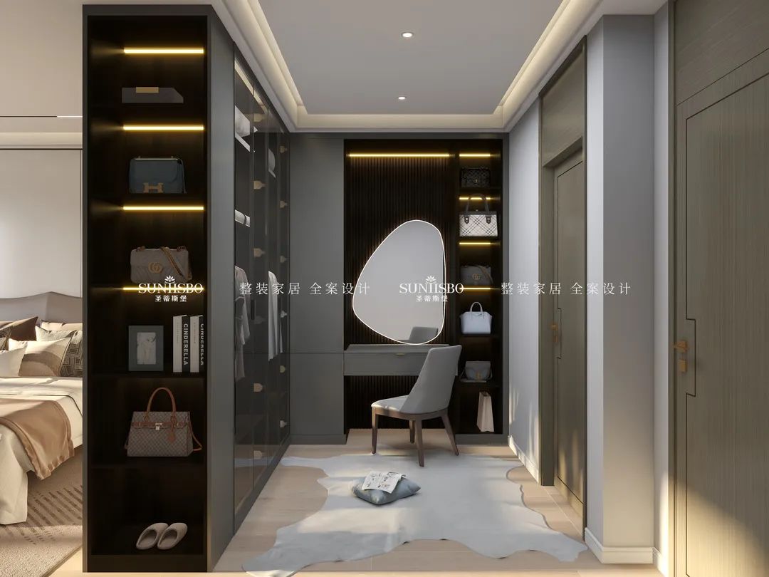②主卧中打造衣帽间,增强储物的同时又保持一定的独立性。